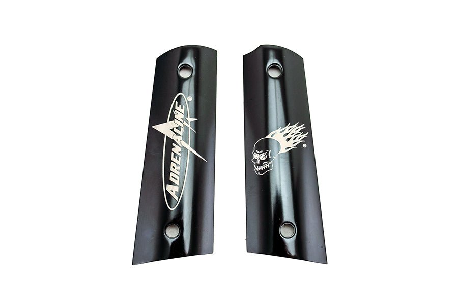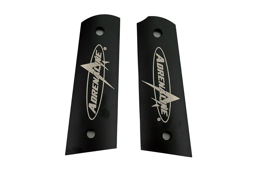The Adrenaline Shocker Anodized Mechanical Grips are custom aluminum grips machined by Adrenaline. While standard 1911 grips have universal latch and safety cuts, these grips were custom designed for the Adrenaline Shocker and DLX Shocker CVO, AMP and ERA mechanical frames. Each set includes 4 extended length stainless steel screws to secure it to the frame.